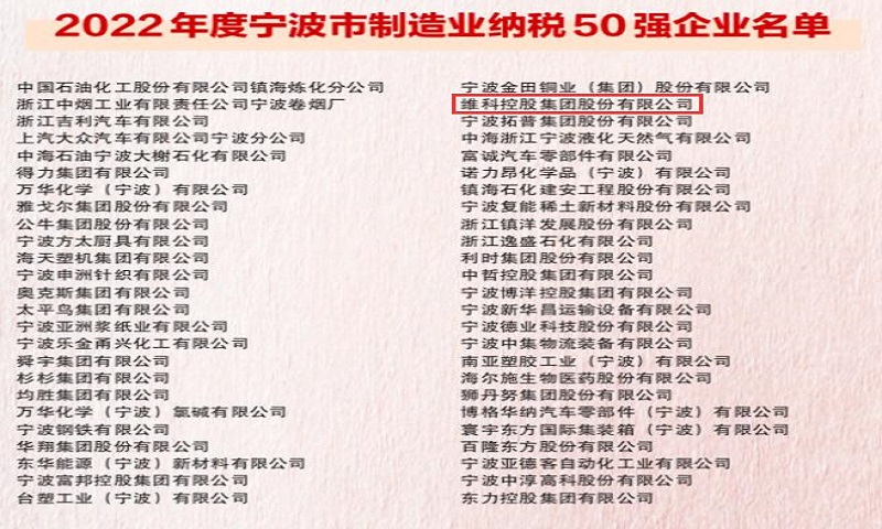 7月14日上午被譽為“寧波經(jīng)濟奧斯卡”的2022寧波創(chuàng)新創(chuàng)業(yè)風(fēng)云榜再次揭開帷幕,維科集團再次榮登納稅榜單,榮獲2022年度寧波市制造業(yè)納稅50強。