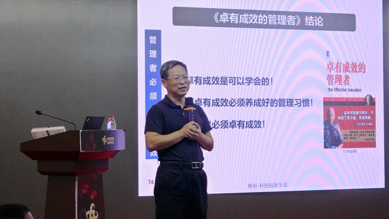 楊總從管理學(xué)大師彼得·德魯克的經(jīng)典著作《卓有成效的管理者》的心得體會(huì)展開(kāi),從“什么是管理”,“什么是管理者”,“什么是管理的有效性”三個(gè)問(wèn)題引發(fā)大家的思考,楊總分享道:作為一個(gè)有效的管理者,必須要有好的管理工具和方法,歸根到底是要形成好的管理習(xí)慣。隨后,楊總圍繞“時(shí)間管理”“關(guān)注業(yè)績(jī)導(dǎo)向”“有效配置資源”“用人之長(zhǎng)”“有效決策”等5個(gè)核心工具方法,引用彼得·德魯克的管理觀點(diǎn)、論述,采用視頻案例分析、點(diǎn)評(píng)萃取提煉的方式,結(jié)合自己的親身經(jīng)歷與管理實(shí)踐,深入淺出地進(jìn)行解讀分享,楊總強(qiáng)調(diào):管理是在實(shí)踐過(guò)程中不斷成長(zhǎng)的,卓有成效的管理是可以學(xué)會(huì)的,而且管理者必須卓有成效。