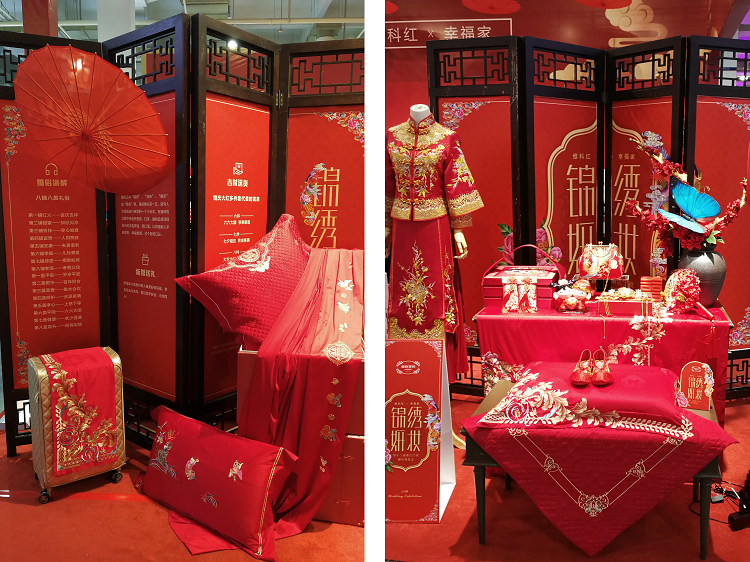 首次亮相婚博會(huì)的維科家紡主題婚慶館內(nèi)以《錦繡妍妝》為主題,為新人傳遞“維科紅X 幸福家”的幸福理念,精美的陳列與華麗的婚慶床品相結(jié)合,呈現(xiàn)傳統(tǒng)婚禮的濃濃中國(guó)風(fēng)味,迎來(lái)了現(xiàn)場(chǎng)眾多新人們的咨詢與圍觀,短短兩天時(shí)間,便收獲了數(shù)十位意向客戶。