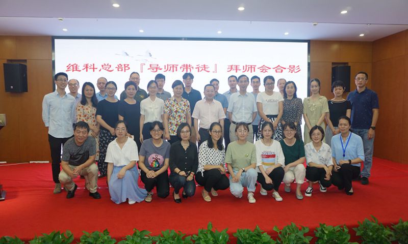 隨后會議以傳統(tǒng)文化禮儀——拜師禮的形式進行師徒結(jié)對,首先由徒弟逐一登臺做表態(tài)發(fā)言,并向師父呈上《拜師帖》拜師,師父予以贈書回禮,最后師徒共同簽訂《導(dǎo)師帶徒協(xié)議書》,在簡單而不失儀式感的拜師禮中,十一對師徒明確了師徒職責,在彼此心底聯(lián)上了師徒情結(jié)。在莊重的誓言聲中,導(dǎo)師和徒弟承諾在今后的工作生活中,互尊互助、同心同德、共勉共進,成為良師益友,共同實現(xiàn)自身價值,為維科的人才培養(yǎng)和持續(xù)發(fā)展貢獻力量。