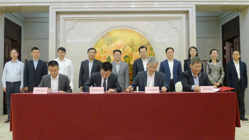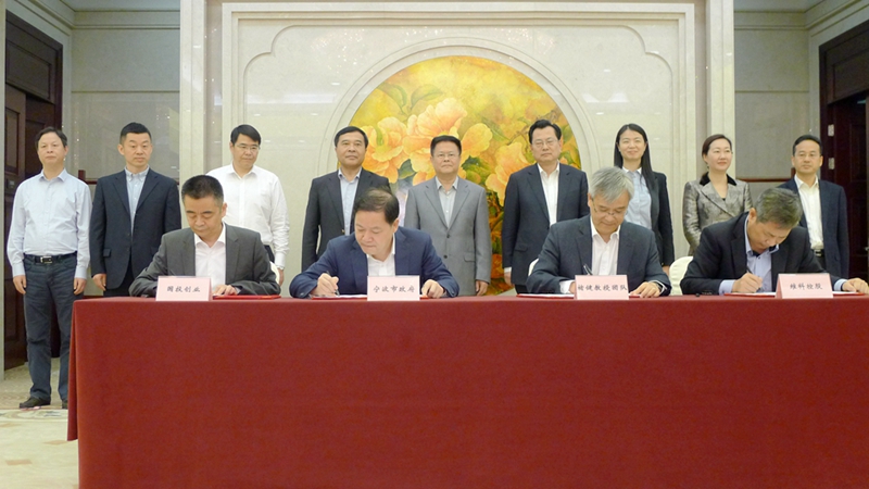 その後、海曙區(qū)人民政府區(qū)長褚孟形、褚健教授、國投創(chuàng)業(yè)総経理高の愛民、維科グループ総裁の何承命は各方面の代表として「協(xié)力協(xié)議」を締結した?!笇幉üI(yè)インターネット研究院有限會社」の各プロジェクトを共同で推進する。